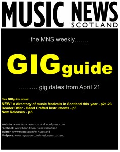 GIGguide advertising – If you’d like your flyer/poster included in the GIGguide, that is only £15 for 2 weeks (ie 2 x guides) or £20 for 4 weeks exposure. Email: alastair@mnscotland.co.uk to book space – payment by PayPal on booking.
