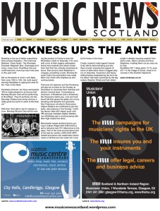 We remain as true as ever to our launch roots of 8 years ago though - MUSIC NEWS Scotland supports all Scottish bands and performers no matter what style of music you’re involved in. Our aim is to circulate music industry news and to help to raise the profile of musicians and improve communications between genres. To help achieve this copies of MUSIC NEWS Scotland are emailed to key industry contacts throughout the UK.
